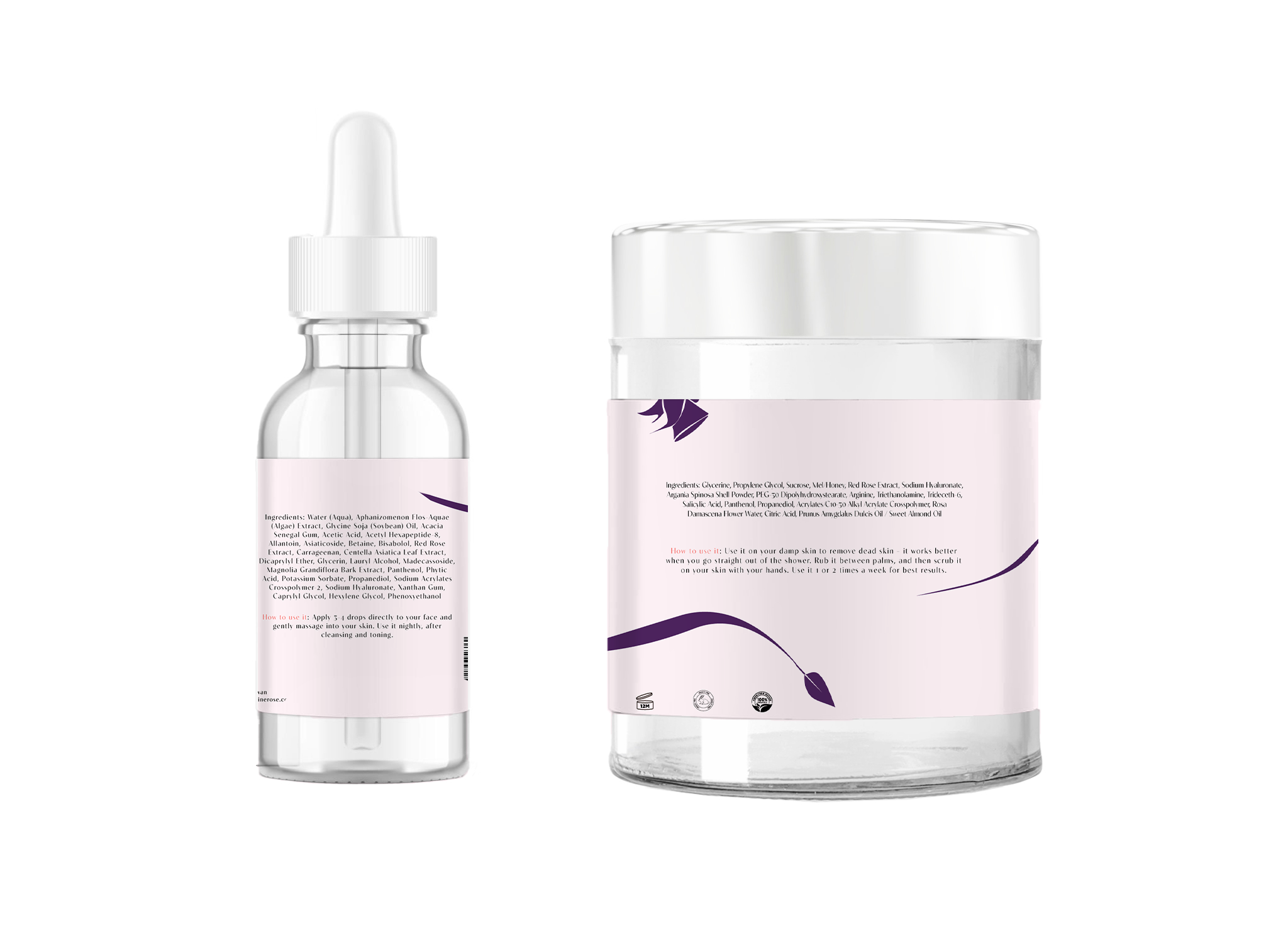 2 variantes d’étiquettes pour leurs produits pour la peau.